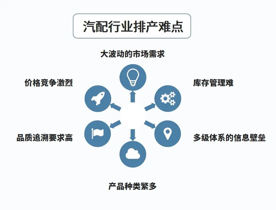 多数汽配企业,销售、生产及流通等各业务环节的数据分散孤立,使得市场需求的紧急波动难以被即时捕捉并有效反馈至生产前端,进而导致原有的生产计划频繁遭遇调整挑战,人工排产难以快速响应市场动态需求。此外,行业普遍存在的委外加工模式,零部件需在多元化的供应商间流转以完成生产与组装,进一步加剧了信息协同管理的难度。